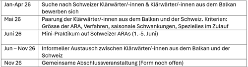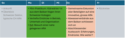Im Rahmen dieser Aktivitäten entstand die Idee, eine Auswahl besonders motivierte Klärwärter/-innen aus dem Balkan zu einem Mini-Praktikum auf eine Schweizer ARA einzuladen. Diese Idee stiess von Beginn an auf sehr grosses Interesse.